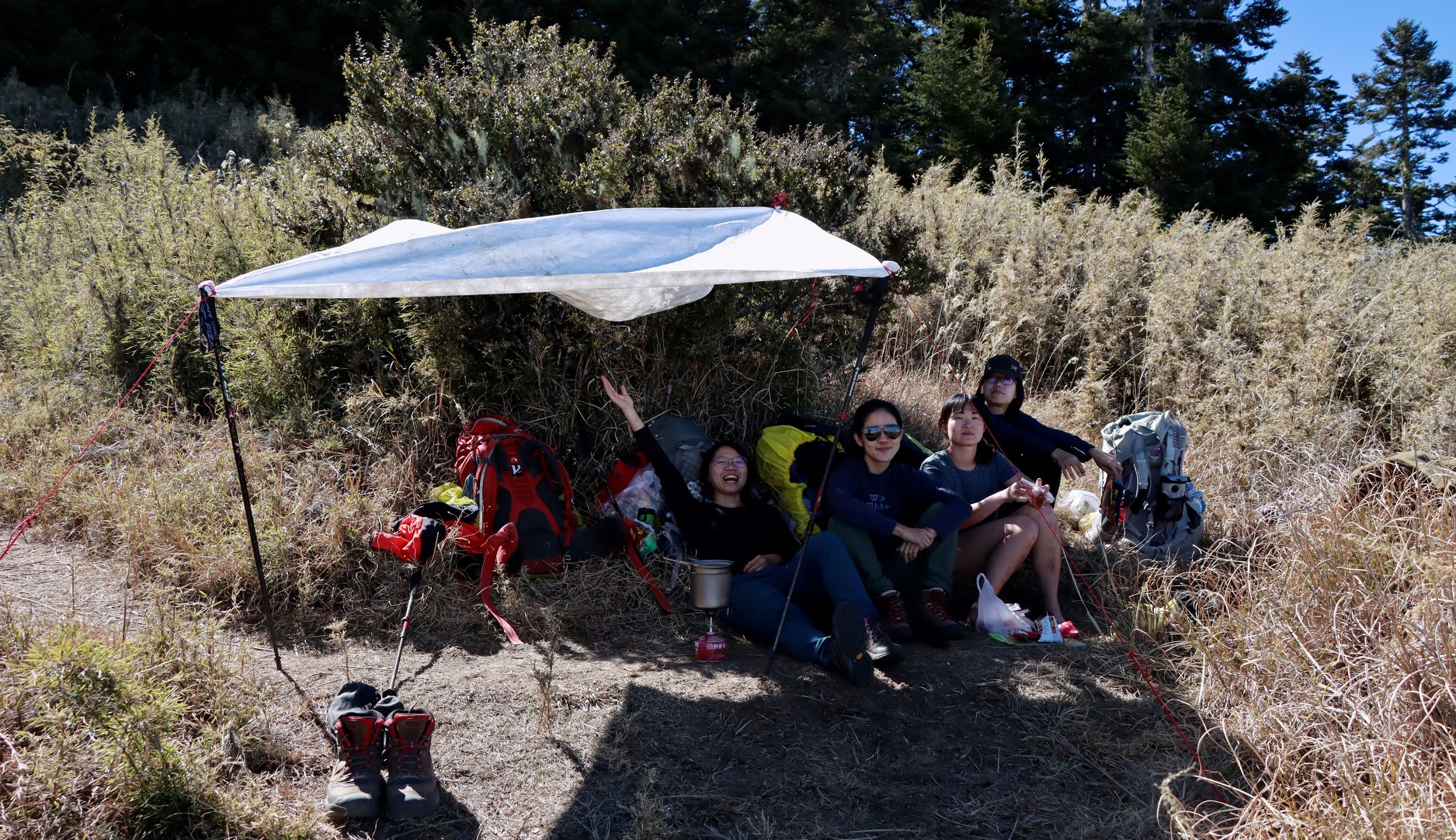 看見我們悠哉從容,在樹下畫畫,在樹幹上曬太陽,在箭竹叢裡煮咖啡,小哥流露出既新鮮又羨慕的神情,說也想和我們一樣走耍廢行程。不過,聽到我們打算走六天去武陵農場,兩位小哥仍是大感訝異。在他們的心目中,相同的行程走四天是標準,六天著實太過糜爛了。
