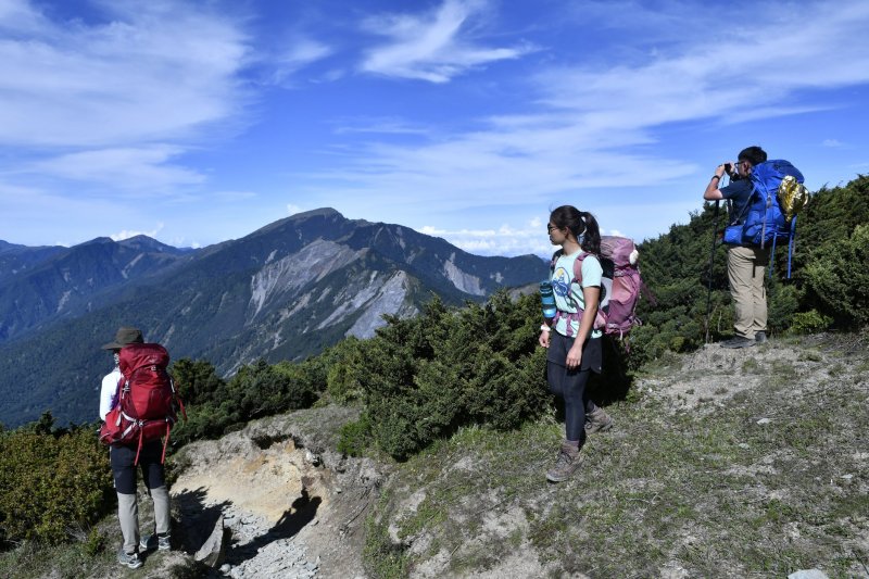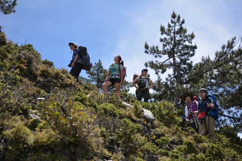 就在此時,三名協作不知從哪兒走了過來,打破了我三秒如三年的太虛神遊。「你們今天打算要走到哪?」其中一位協作開口問道。我說要走到獵寮營地過夜,然後他們的身影伴隨著幾聲讚嘆,消失在彼岸山坡。